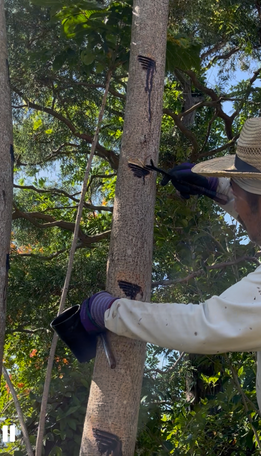 1本の木から採れる樹液は牛乳びん1本分、わずか200ccほどですから本当に貴重です。
